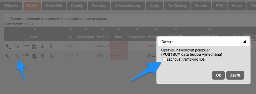 Duplikace trafficking ID při klonování placementu