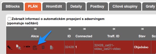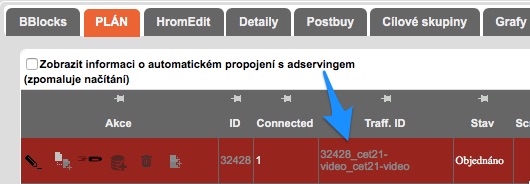 2 – Kampaň je správně propojená, ale statistiky se stále nenačítají – Běžte prosím do správy kampaně. V plánu kampaně je sloupec Traff. ID. Ten obsahuje takzvané trafficking ID, které pomáhá H3.0 k identifikaci jaká řádká plánu je jaká řádka v adserveru. Toto trafficking ID si zapamatujte.