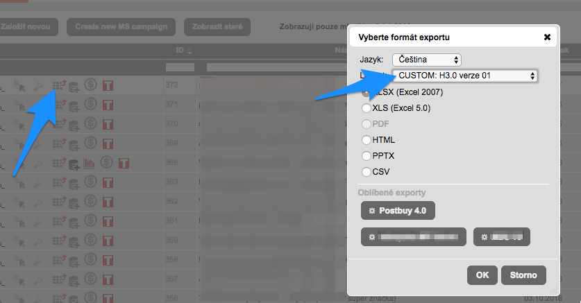 - defaultní export je předvybraný v seznamu exportů při exportování mediaplánu