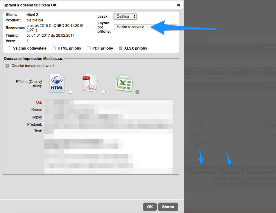 Nové – klientské – defaultní templaty exportů, rezervací a objednávek