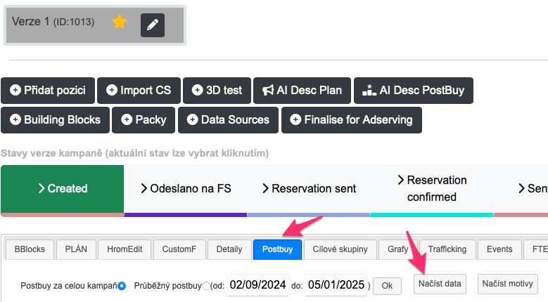 V záložce Postbuy ve Správě kampaně klikněte na tlačítko Načíst data