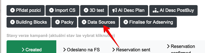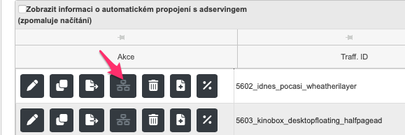 V H3.0 ve Správě kampaně klikněte v řádku kampaně na tlačítko napojení placementu na datový zdroj.