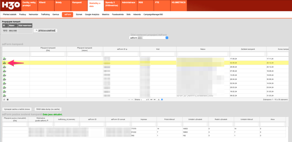 Pokud máte v externí kampani správně zadané trafficking ID, viz Jak a kam zadat trafficking ID, dojde k napojení statistik k řádkům H3.0 plánu automaticky.