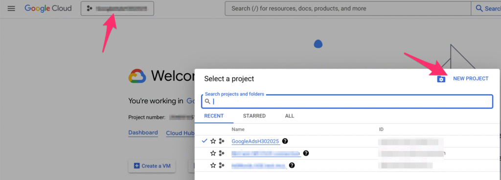 Založte nový projekt – klikněte na Pulldown s projekty vlevo nahoře a poté tlačítko New project.