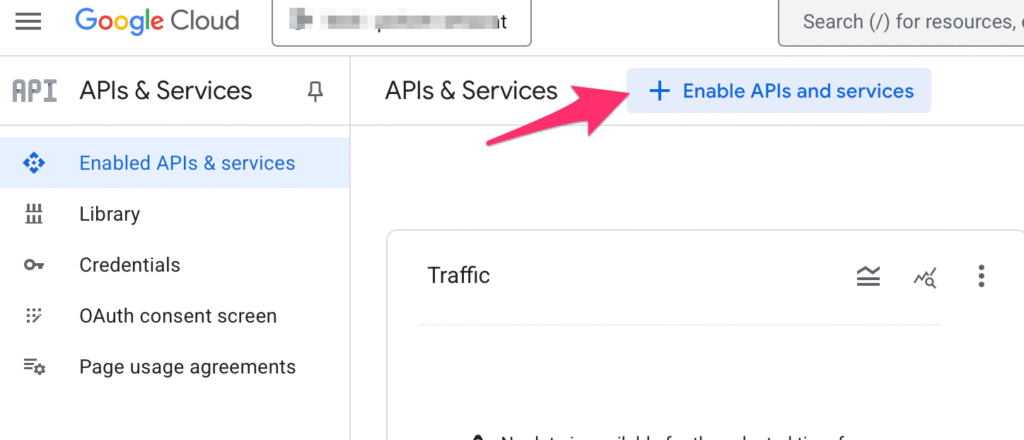 Klikněte na tlačítko “+ Enable APIs and services”.