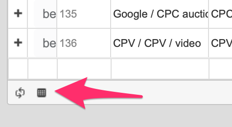 Poznámka: pokud by se vám zdálo, že sloupce nevídíte, je možné že je máte skryté. Sloupce si v takovém připadě zobrazíte kliknutím na ikonku tabulky = “zobrazit / skýt sloupce”, která je v patičce postbuy tabulky. Jednotlivé sloupce si zapínáte a vypínáte kliknutím myši společně s tlačítkem Ctrl / Cmd.