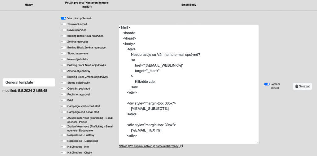 Každý e-mail, který z H3.0 odchází (rezervace, objednávky, briefy, podklady, alerty a kdoví co ještě) je nyný možné obalit do vizuálního template, které zajistí, aby ten e-mail byl hezoučký.