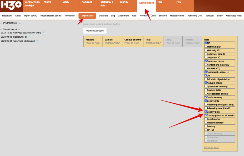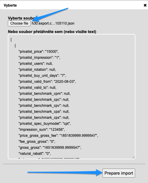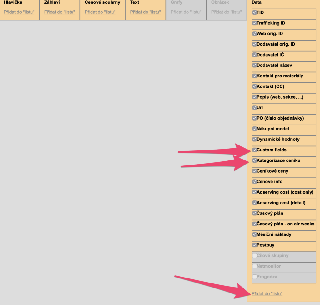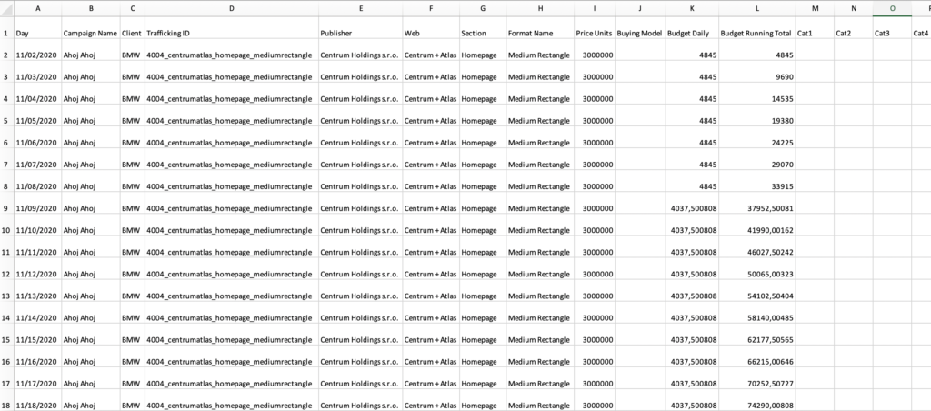 K promptu se před posláním do Chat GPT přidají ještě data kampaně (bez uvedení klienta) nazvané POSTBUYDATA, obsahující po řádcích placementy kampaně s daty: