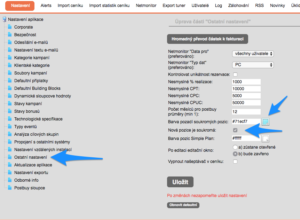 V Administrace/Nastavení/Ostatní nastavení, je možné nastavit následující:
