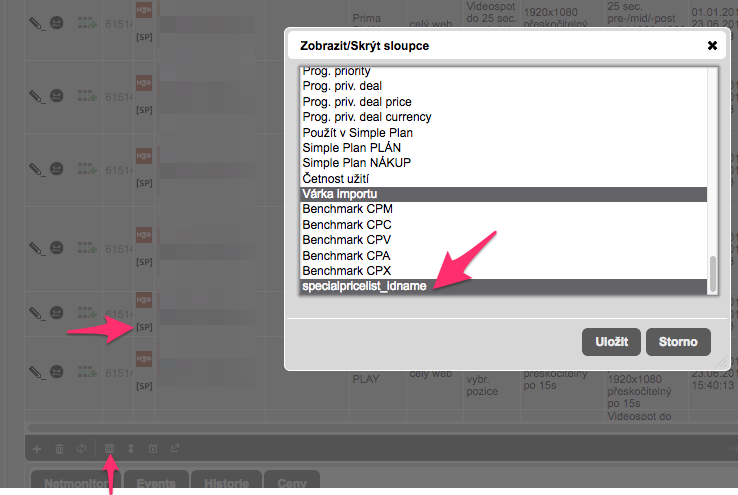 Navíc, pokud si v ceníku zobrazíte i sloupec “specialpricelist_idname”, vyjede vám sloupec s tímto ceníkem a můžete ho i vyfiltrovat pomocí vyhledávacího pole nahořed pod záhlavím tabulky.
