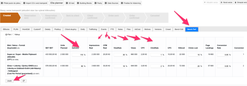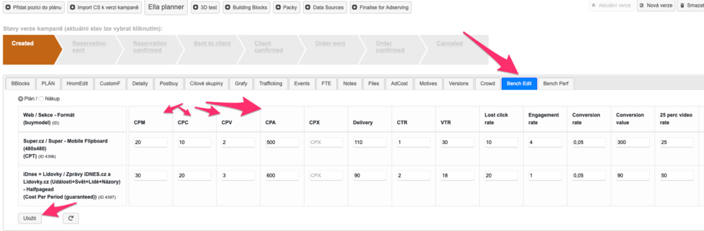 – Správa kampaně – nákup, plán, postbuy, příplatky nákupu, příplatky plánu