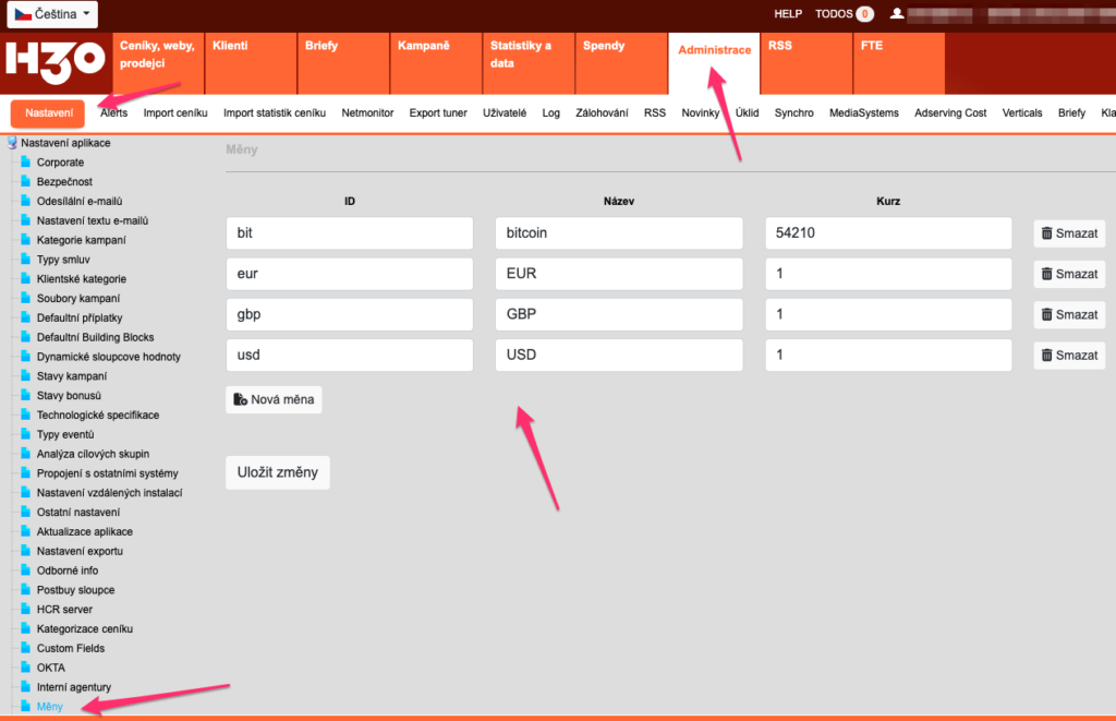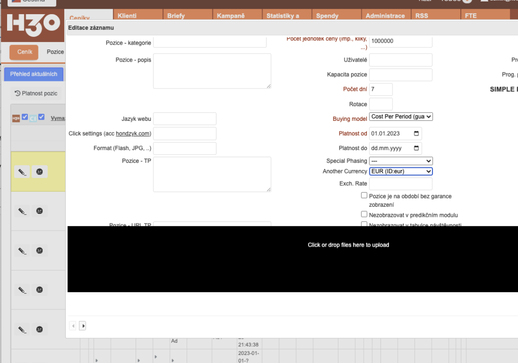 U položek ceníku (i v kampani) je nyní možné označit, že jsou fakturovány v cizí měně. To pomůže lepší evidenci v modulu Fakturace. Pozor – částky v mediaplánech v H3.0 jsou vždy v pouze v jedné měně a tou je hlavní měna instalace H3.0. Tato funkce slouží pouze pro informaci pro fakturace, že částka přijde v jiné měně a potenciální přepočet a kurs.