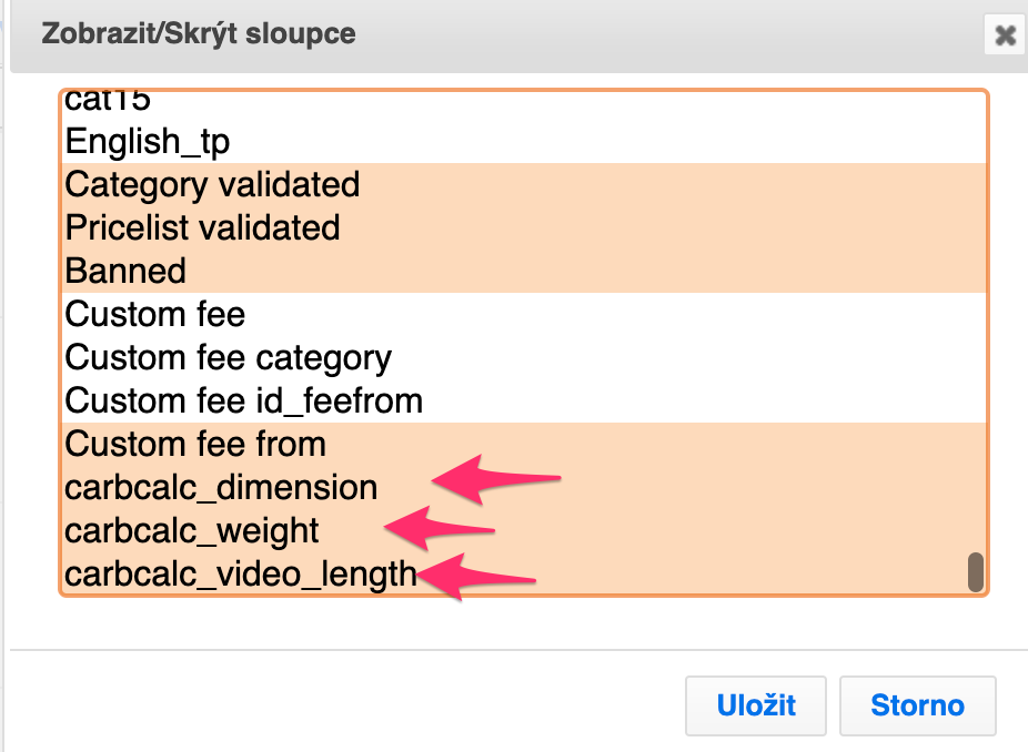 – checkbox – pomocí něho je možné viditelnost sloupce zapnout/vypnout