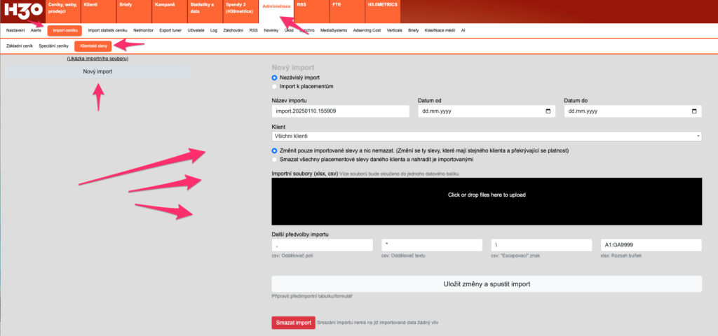 Oba importy vycházejí ze stejného templatu a importují se v Administrace / Import ceníku / Klientské slevy.