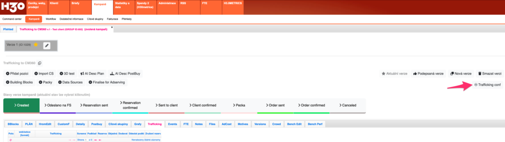 Tlačítko Trafficking sync samozřejmě funguje i u již natraffickované kampaně, kdy tu kampaň upraví podle toho, co je nyní v H3.0