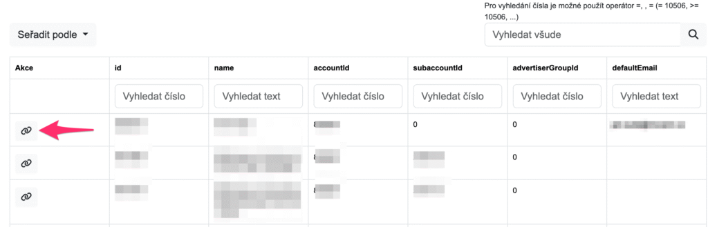 V menu Klienti vybereme klienta a ikonkou tužky naeditujeme záznam o jeho Advertiser ID a Default Landing page ID – jsou v dolní části editace klienta.